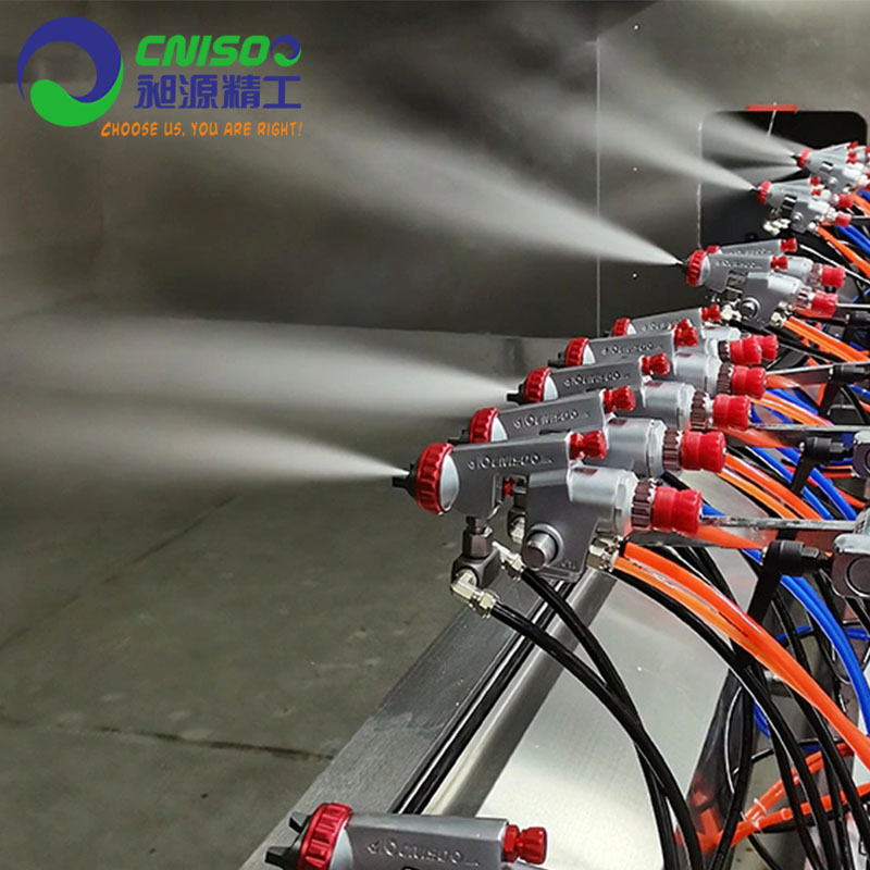 雾化帽采用环保铜合金经过五轴联动CNC多次精加工而成。每一支雾化帽都经过专业检测试喷,以防止在喷涂中产生的雾化不良,从而降低了生产中因为喷枪喷涂而产生的不良率。